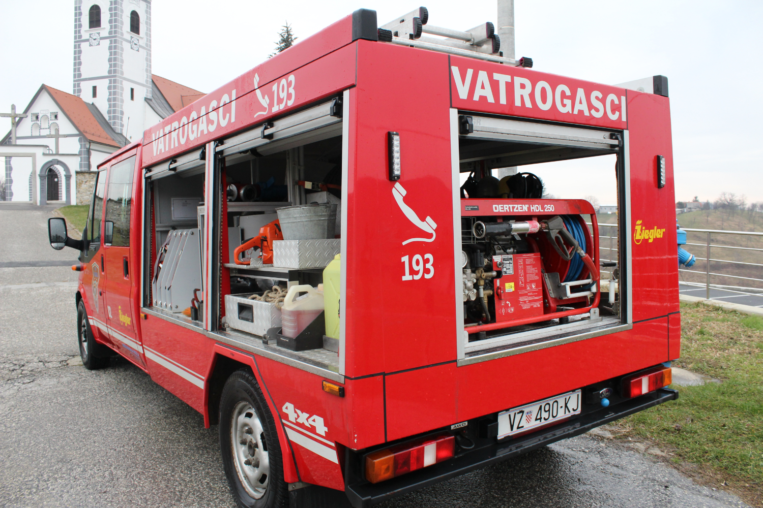 Posada: 8 vatrogasaca Pogon: 4x4 Spremnik vode: 2.500 litara